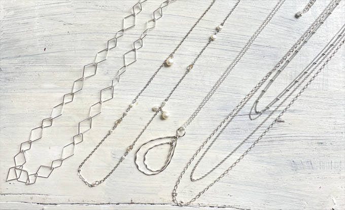 特にロングネックレスでは、ベーシックな長さのネックレスとセットになった