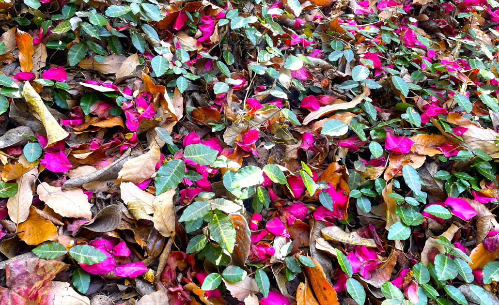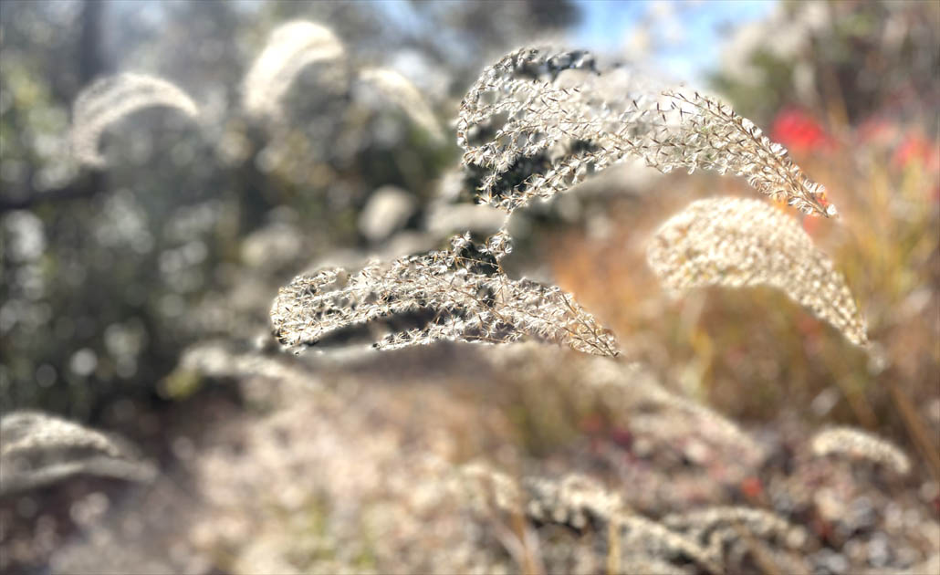 冬越しをする植物たちのなかに